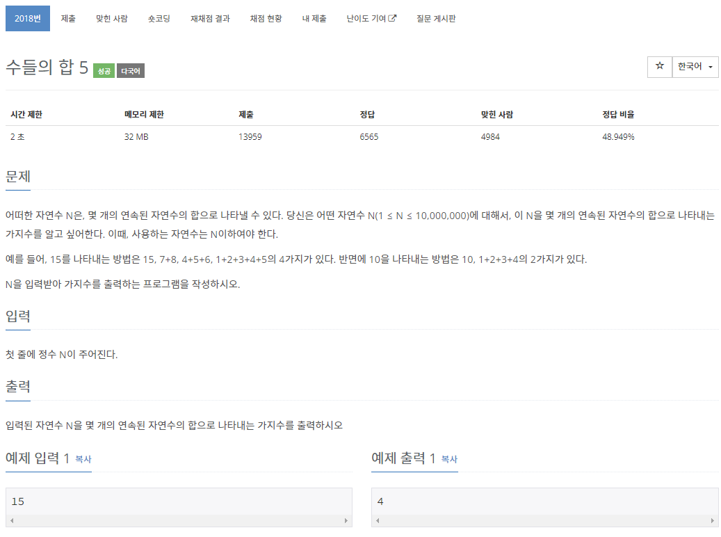 (count가 처음에 1로 초기화한 이유는 자기자신의 값이 sum = num이기 떄문이다.)