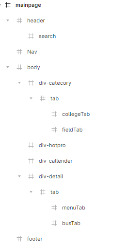 단과대별에서 지도 부분이랑 학식 식단표, 달구지 시간표, footer부분은 차차 디자인해갈 계획이다.