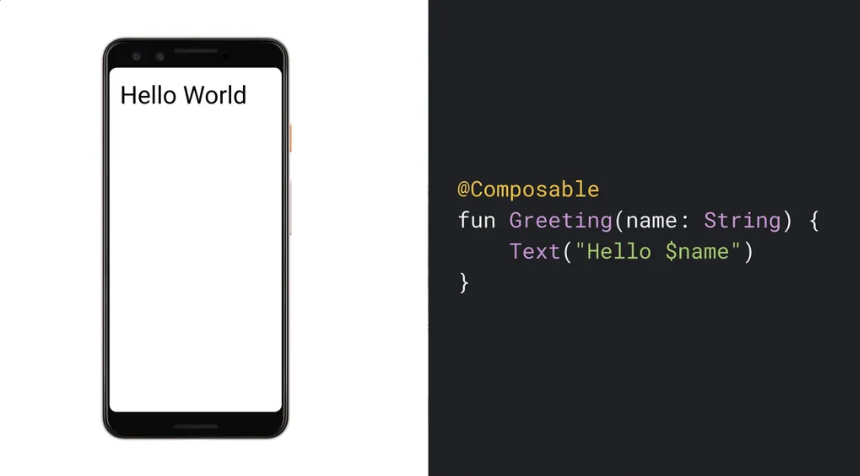 UI를 내보내는 Compose 함수는 UI 위젯을 구성하는 대신 원하는 화면 상태를 설명하므로 아무것도 반환할 필요가 없다.