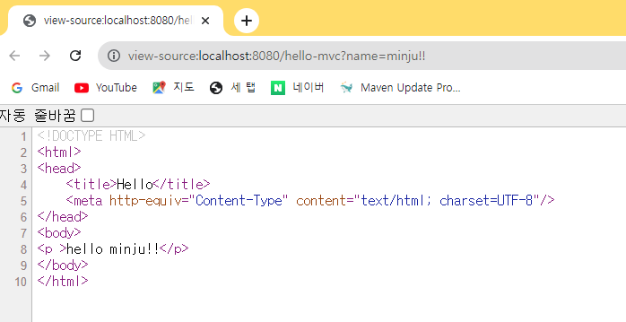 View의 코드에서 ${name}이 모델에서 값을 치환된 것이다. (minju!!로)