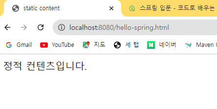 이렇게 변환되지 않고 컨트롤러 없이 그대로 반환되는 것이 정적 컨텐츠이다.