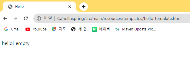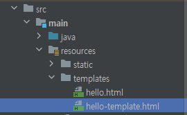 return "hello-template"를 반환함으로서 Spring이 자동으로 src/main/resources의 templates에서 hello-template를 찾아 View에 반환한다.